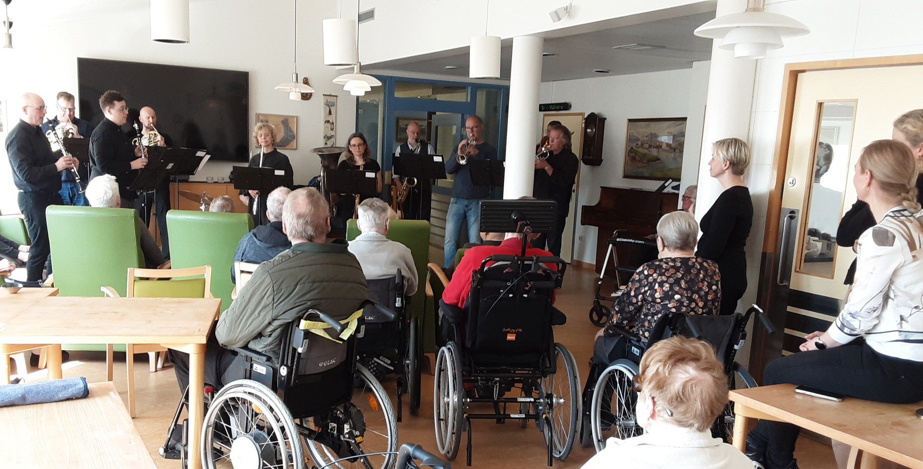 Blásturhljómsveit Sinfóníuhljómsveitar Íslands bauð íbúum Skjólgarðs á Hornafirði upp á létta og skemmtilega vortónleika 30. apríl síðastliðinn. Sinfóníuhljómsveitin var á tónleikaferð um Suðurland og bauð samhliða upp á þessa tónleika. Frábær skemmtun og íbúar nutu tónlistarinnar til fullnustu. Íbúar þekktu lögin sem spiluð voru og má segja að þetta hafi verið frábær vorboði.